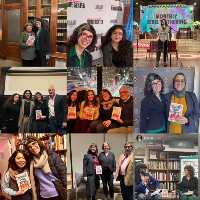 Clockwise from top Left with: Almeta Cooper at the Library of Congress, Dharna Noor at the Library of Congress, XRNYC in NYC, Amaney Jamal at Princeton University, Mustafa Santaigo Ali at Politics & Prose, Kimberly Nicholas and Seth Borenstein at American University, Jean Su at Kramer Books, Steven Donziger, Saad Amer, and Sage Lenier at NYC Ethical Cultural Society, and friends in NYC.