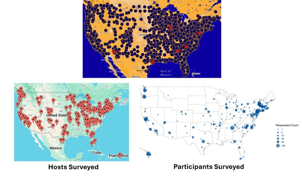 One of the challenges of studying protest in this era of distributed activism is that it’s extremely difficult to get a decent sample of who is participating across sites. When my team surveys at a large-scale protest event, like the Women’s March in Washington, DC in January 2017, we are only able to generalize our findings to the specific location where we sampled participants. In an effort to get a sense of the #NoKings Day-of-Action across the US, we worked with the organizers of the event to survey hosts coordinating these distributed actions. We then asked the hosts who participated in the study if they would share a link to our anonymous survey with the participants who signed up for their specific events.