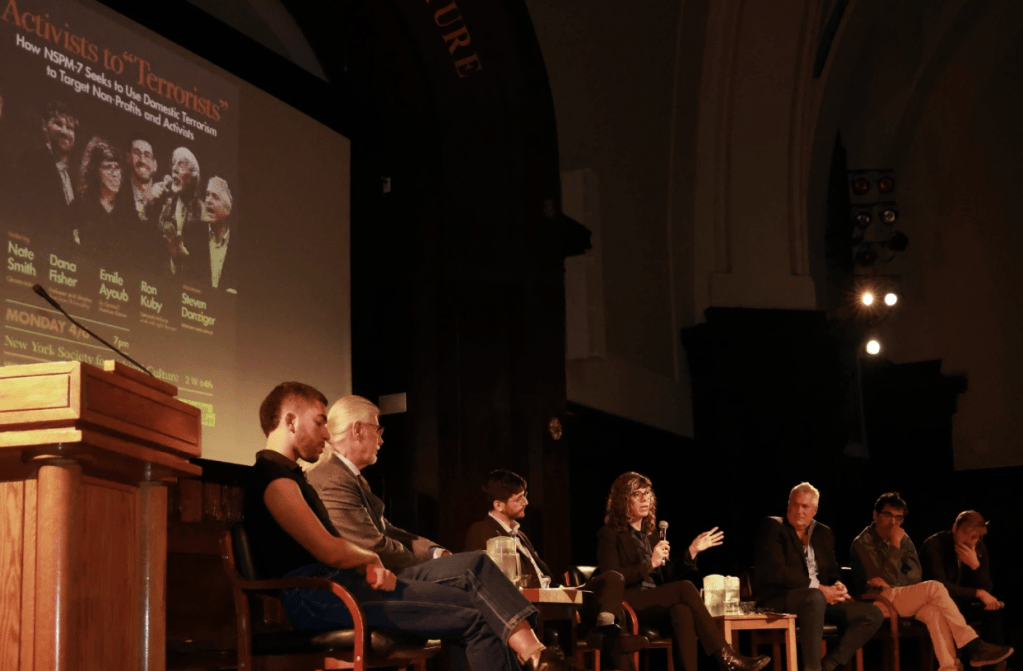 On Monday, I participated in a conversation about the efforts by the Trump Administration to label peaceful activists as domestic terrorists at the New York Society for Ethical Culture. The conversation included a number of activists who have experienced repression from the Administration first hand along with civil rights lawyer Ronald L. Kuby and Senior Counsel at the Brennan Center for Justice, Emile Ayoub.